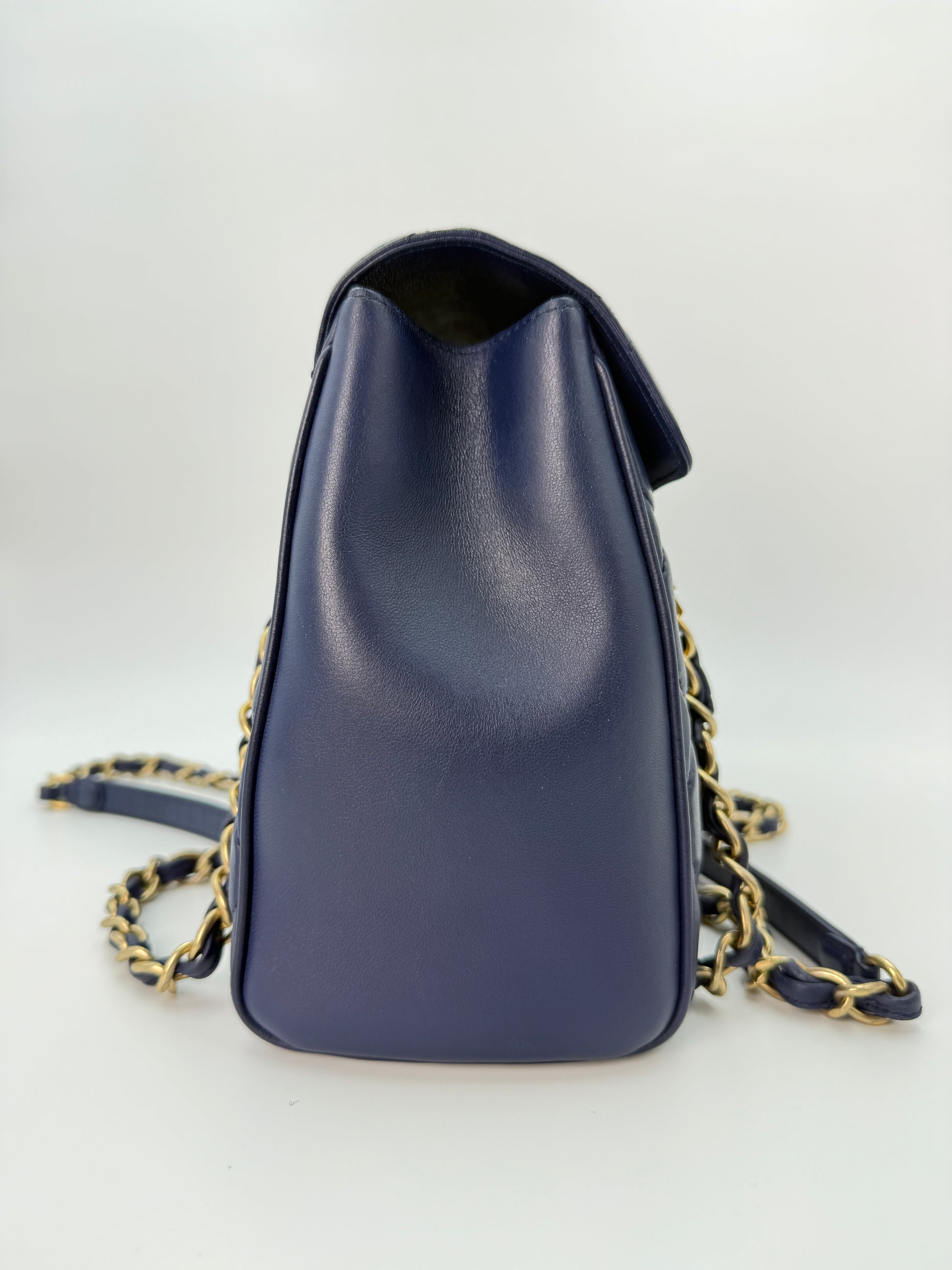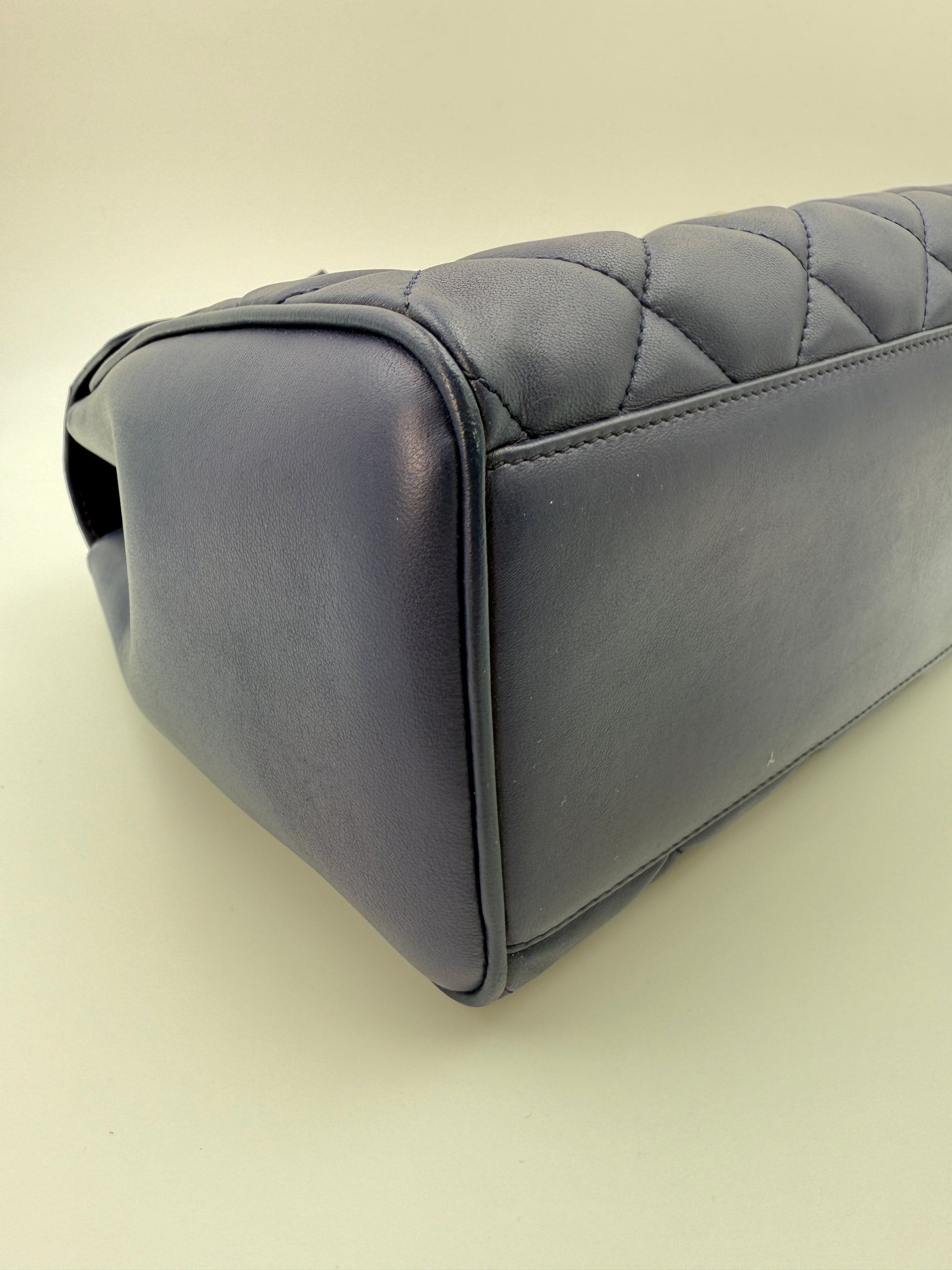 This Chanel Misa Camera Flap Bag is crafted from supple navy blue calf leather and accented with gold hardware. From Series 17 (2012–2013), this piece combines a camera-style silhouette with Chanel’s timeless flap design, making it both stylish and functional. Its medium-large size offers practicality without losing elegance, perfect for everyday use.