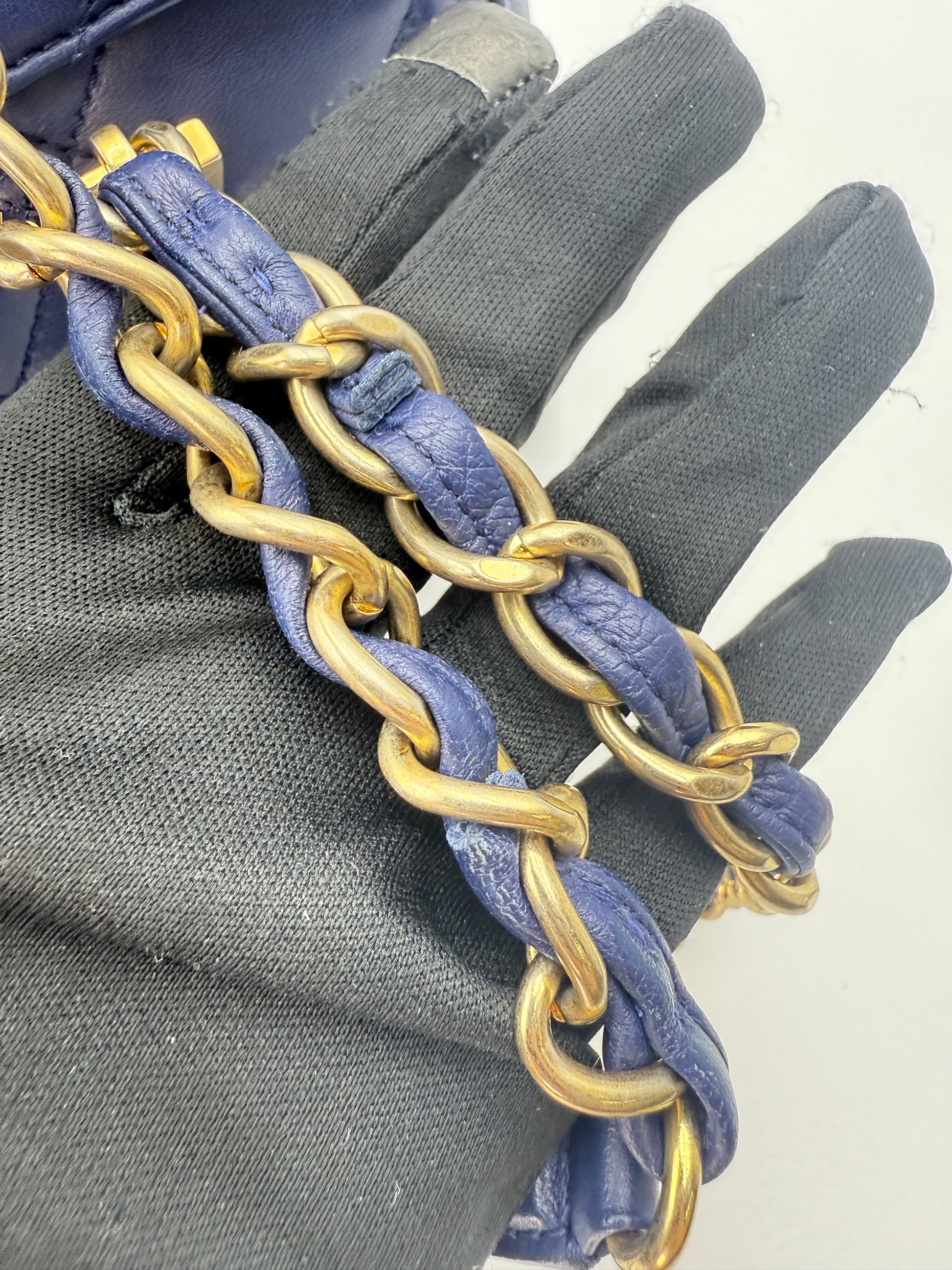 (AJ60) Chanel Navy Blue Calf Leather Misa Camera Flap Bag, Gold Hardware
